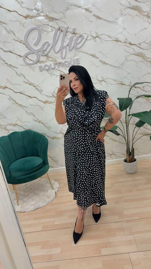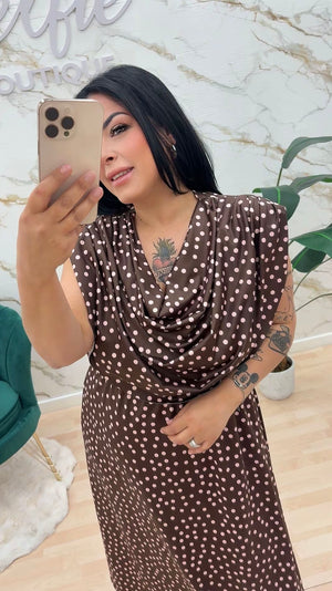 Abito in Jersey con fantasia pois, scollo ad anello.
