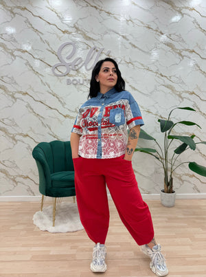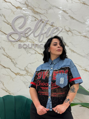 Camicia con dettagli denim e pizzo.