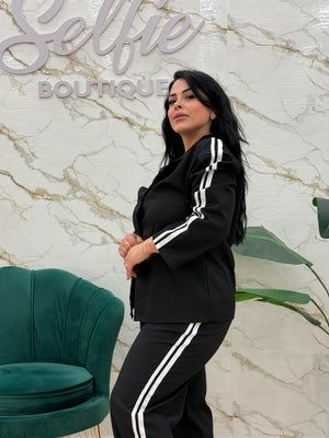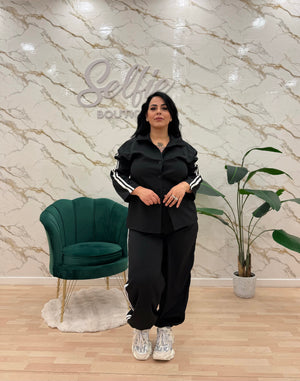 Coordinato composto da camicia e pantalone con polsino al fondo ed elastico in vita.